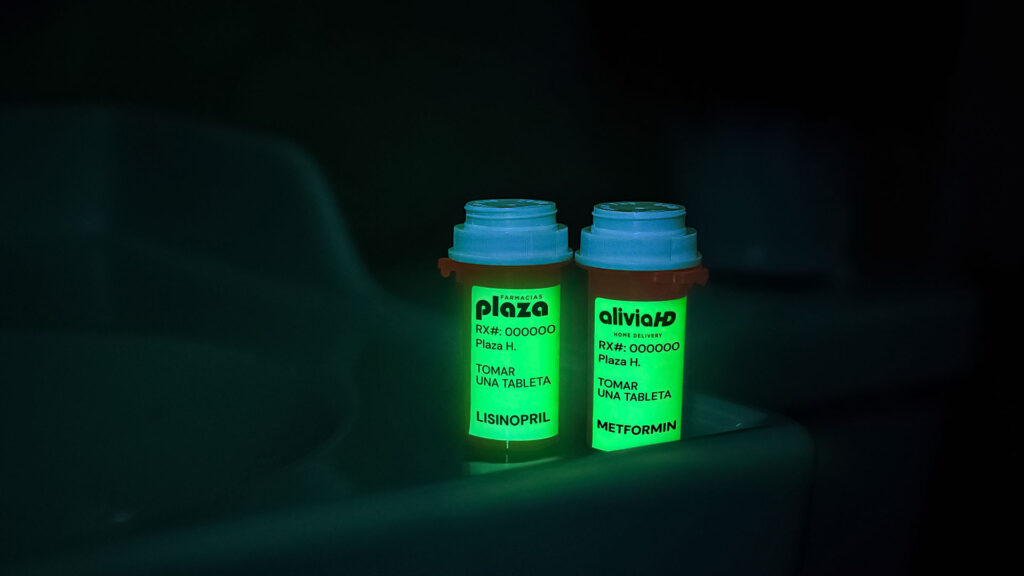 LUZ QUE ALIVIA son etiquetas que brillan en la oscuridad para medicamentos recetados, diseñadas especialmente para adultos mayores. Estas etiquetas ayudan a los pacientes a identificar sus tratamientos de forma rápida y segura, reduciendo el riesgo de confusión y errores que podrían comprometer su salud o la efectividad del tratamiento. Al brillar en entornos con poca luz, estas etiquetas brindan mayor tranquilidad tanto a los pacientes como a sus cuidadores.